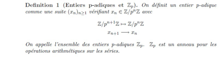 Intuitivement, je pensais que les nombres p-adiques étaient une catégorie de nombres comme les nombres premiers, les nombres de Mersenne ou les nombres de Fibonacci par exemple. J’ai vite compris que ça n’était pas du tout le cas. Les nombres p-adiques n’ont, a priori, rien à voir avec les nombres que nous utilisons quotidiennement. Pourtant, les nombres p-adiques s’écrivent avec des chiffres et on peut établir des ponts entre ces deux mondes.